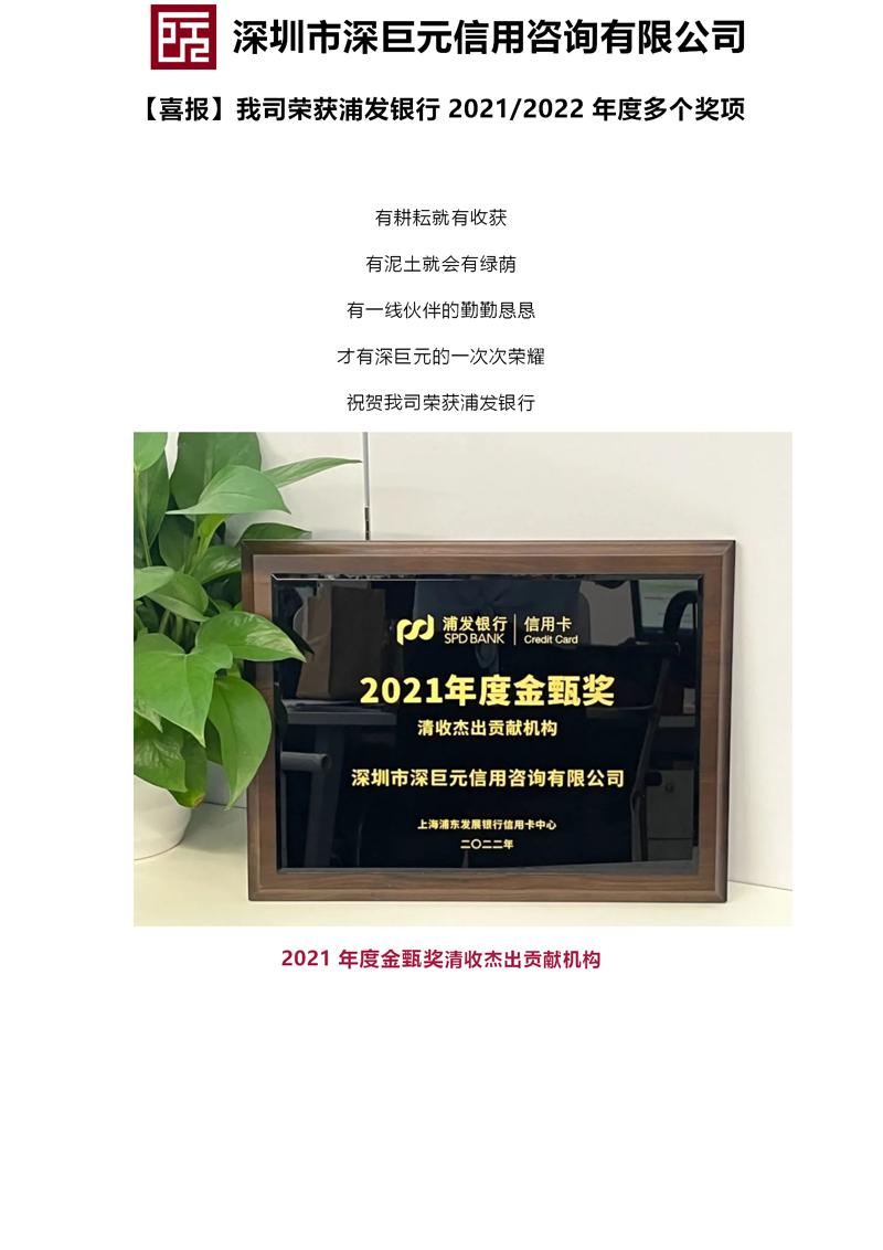 【喜報(bào)】我司榮獲浦發(fā)銀行2021/2022年度多個(gè)獎(jiǎng)項(xiàng)